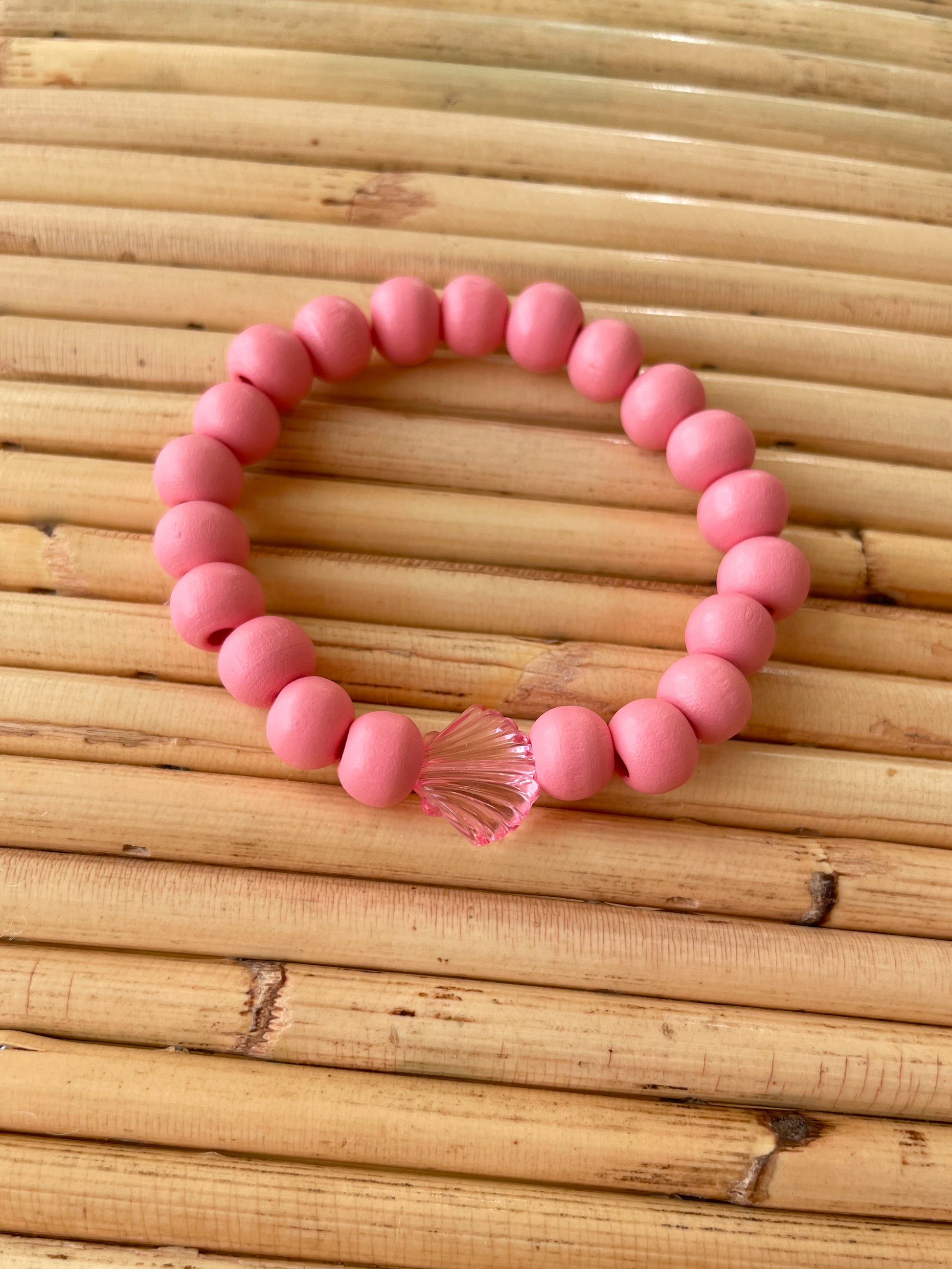 Material: Holzperlen, Acrylperle, elastisches Gummiband