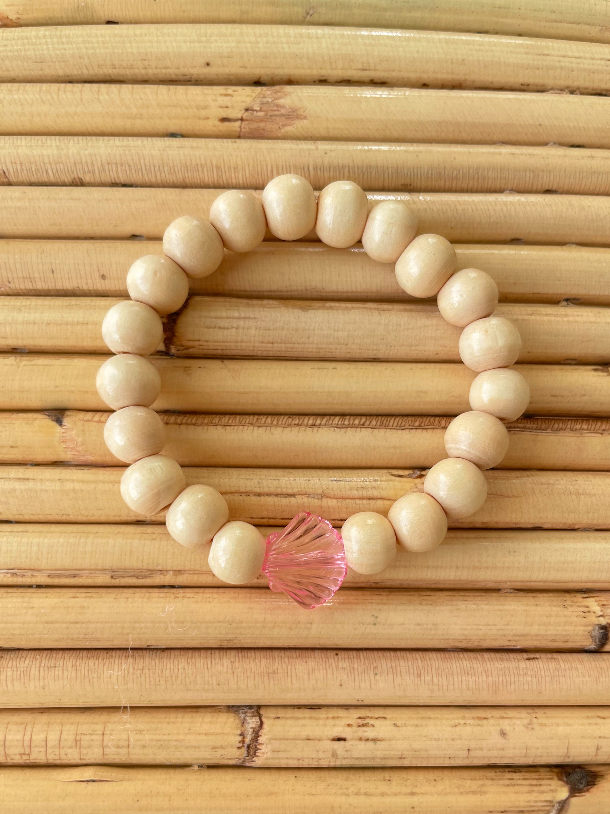 Material: Holzperlen, Acrylperle, elastisches Gummiband