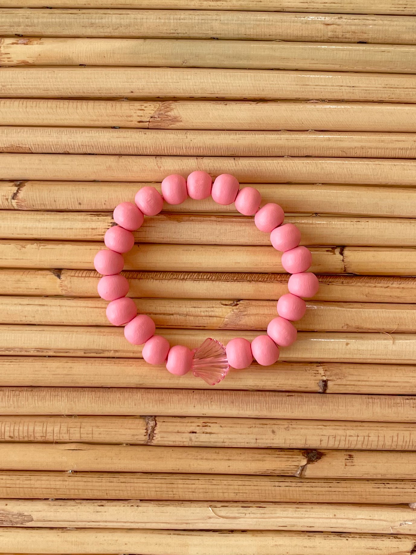 Material: Holzperlen, Acrylperle, elastisches Gummiband