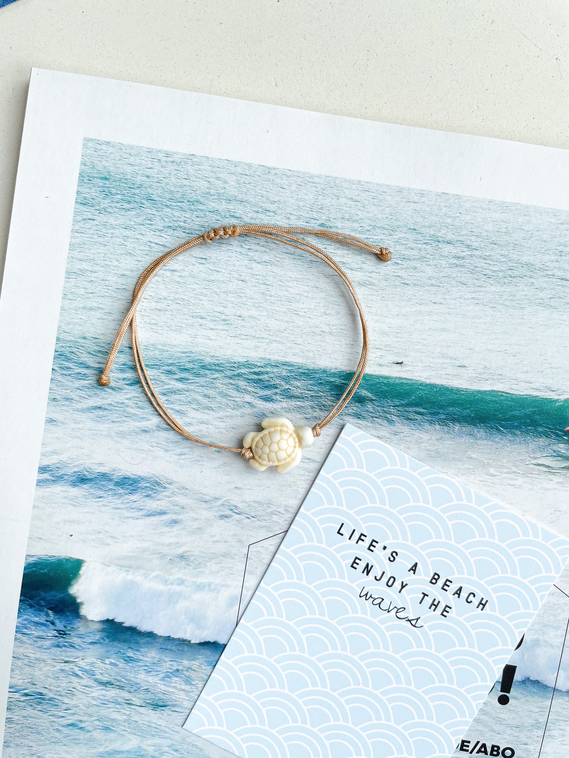 Dieses handgefertigte Armband ist mit einem praktischen Schiebeknoten ausgestattet, der sich ganz einfach auf- und zuziehen lässt. So kannst du den Umfang individuell anpassen und es bequem tragen. 🐚